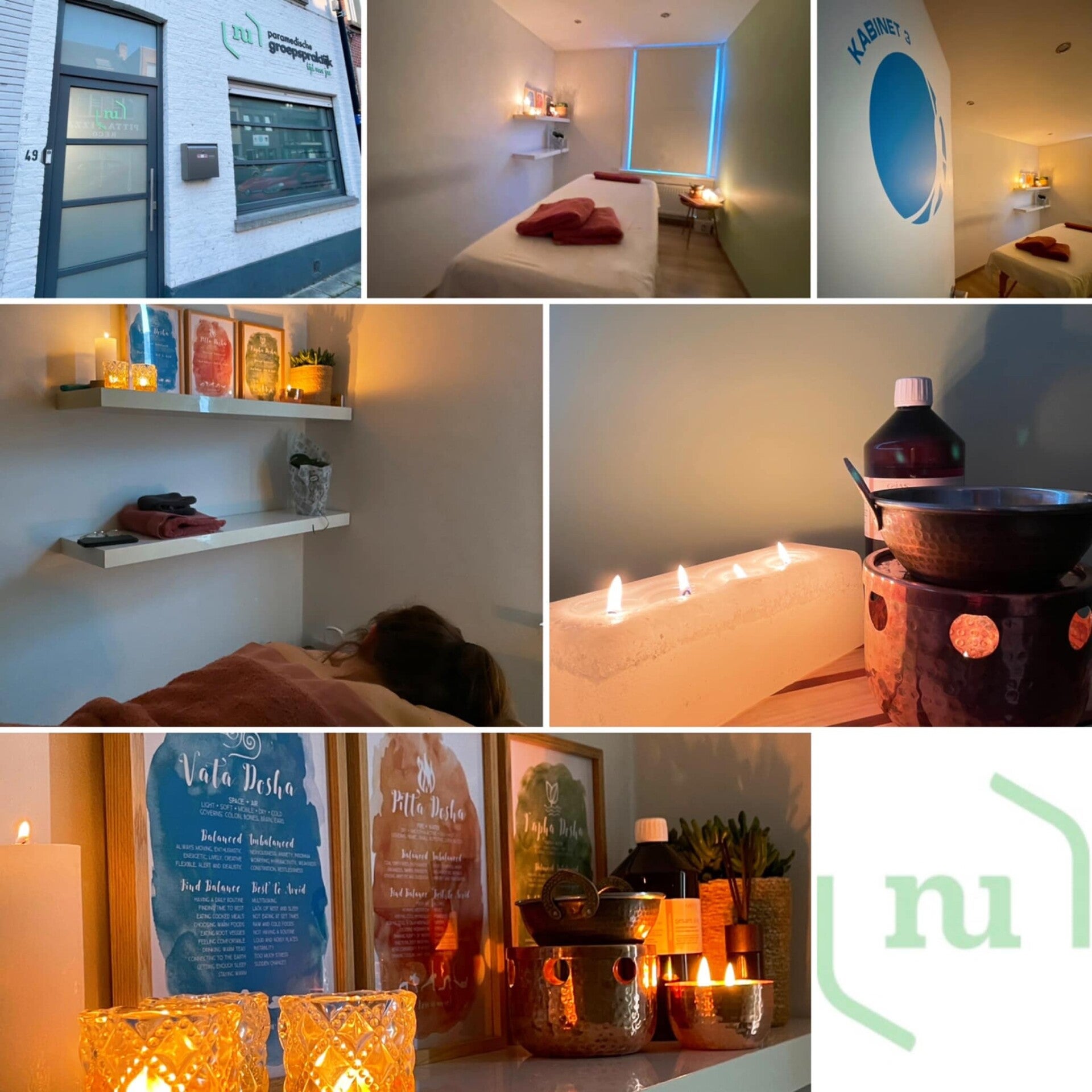 Een van de meest bekende praktijken binnen Ayurveda is de ayurvedische massage, een therapeutische massage die mee helpt het lichaam en geest in balans te brengen/ te houden. Elke mens heeft een unieke blauwdruk, een unieke combinatie van de dosha's Vata, Pitta en Kapha, die bij de geboorte perfect in balans is. Echter, door voeding, stress, omgevingsfactoren, leefwijze... kan een verstoring, een onbalans ontstaan. Een onbalans kan zich uiten in constipatie, brandend maagzuur, een droge huid, een kort lontje, een opgeblazen gevoel, vermoeidheid, futloos... Dit afhankelijk van de dosha die op dat moment gaat overheersen of uit balans is. Wordt deze onbalans niet aangepakt, kan ziekte ontstaan. Een ayurvedische massage kan een belangrijke bijdrage leveren in het opnieuw in balans brengen van de dosha's. De ayurvedische massage (Abhyanga = insmeren met olie) kenmerkt zich door het gebruik van warme, natuurlijke oliën en is een algemeen, ondersteunde massage gericht op balanceren van uw constitutie en op het reinigen van weefsels en kanalen. De massage heeft een sterk therapeutisch effect en is daarenboven heerlijk ontspannend.